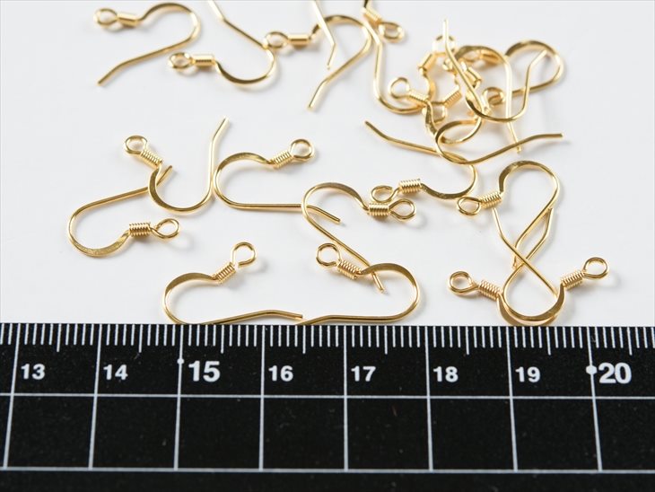 サージカルステンレス 316L ピアスパーツ 10ペア ステンレス316L 金属アレルギー対応 スタイリッシュばね付 カン付 16mm ゴールド