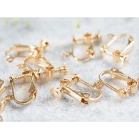 イヤリング パーツ ネジバネ 平皿タイプ ゴールド 15.5mm ゴールド 10ペア 金属アレルギー対応 ニッケルフリー カン付 真鍮 イヤリング金具