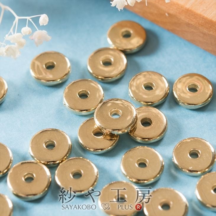 スペーサー コイン大 8mm ゴールド 約50個 50ケ ニッケルフリー アレルギー対応 ラウンド ちょこっと CCB製ビーズ メタルビーズ 約0.8cm