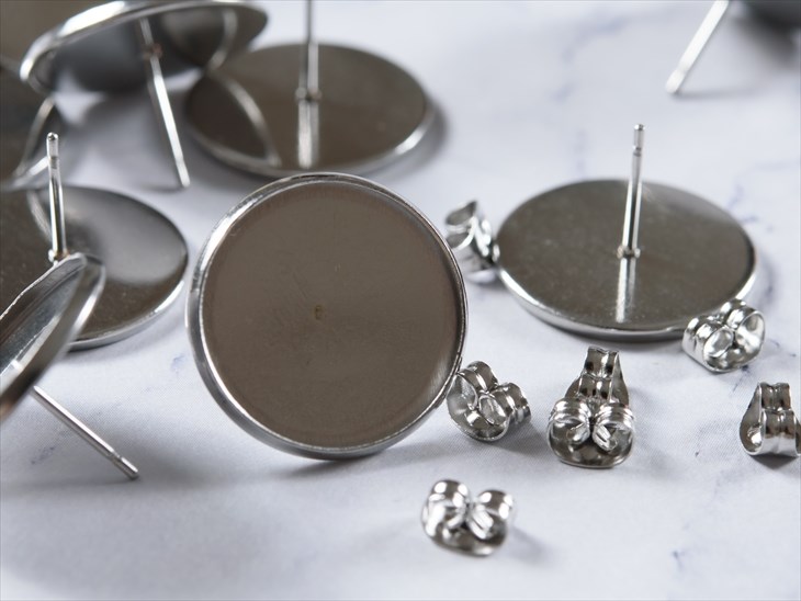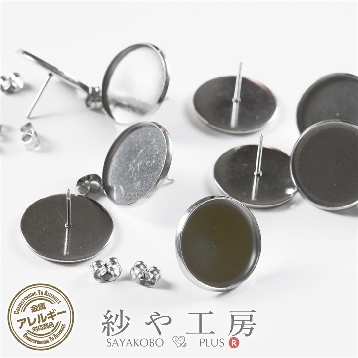 サージカルステンレス 316L ピアスパーツ 5ペア ステンレス316L 金属アレルギー対応 ポストピアス 台座付 キャッチ付 シルバー 内径18mm