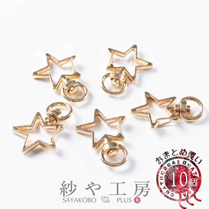 キーホルダーパーツ 星 回転カン付 ゴールド 34mm 10個 10ヶ バッグチャーム ナスカン デザインナスカン スター おしゃれ モチーフ 約3.4cm