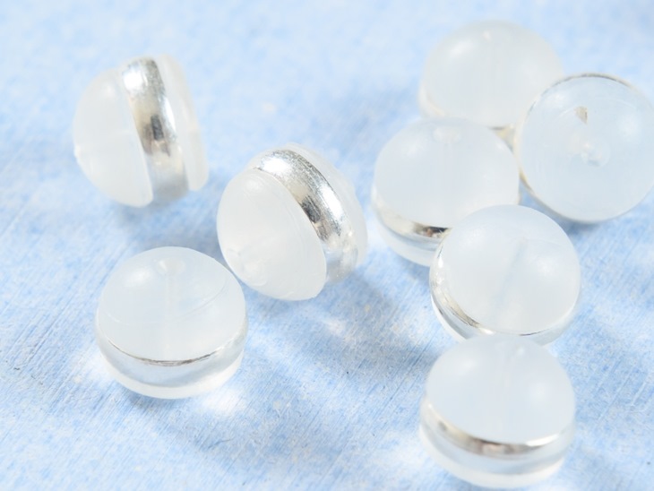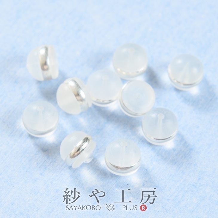 シリコンキャッチ ピアス キャッチのみ リングタイプ クリア×ホワイトシルバー 5mm 10個 10ヶ 約0.5cm アクセサリーパーツ