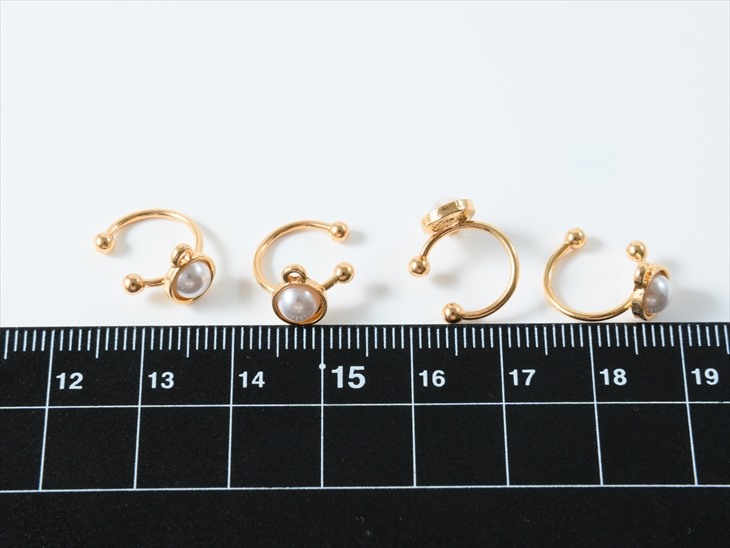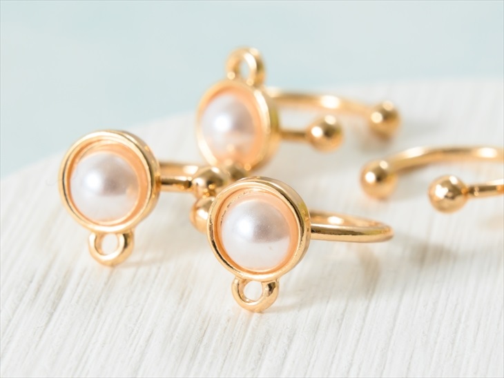 イヤリング パーツ ニッケルフリー 変退色防止加工済 金属アレルギー対応 イヤーカフ パール ゴールド 8mm 2ペア 4個 カン付 左右対称
