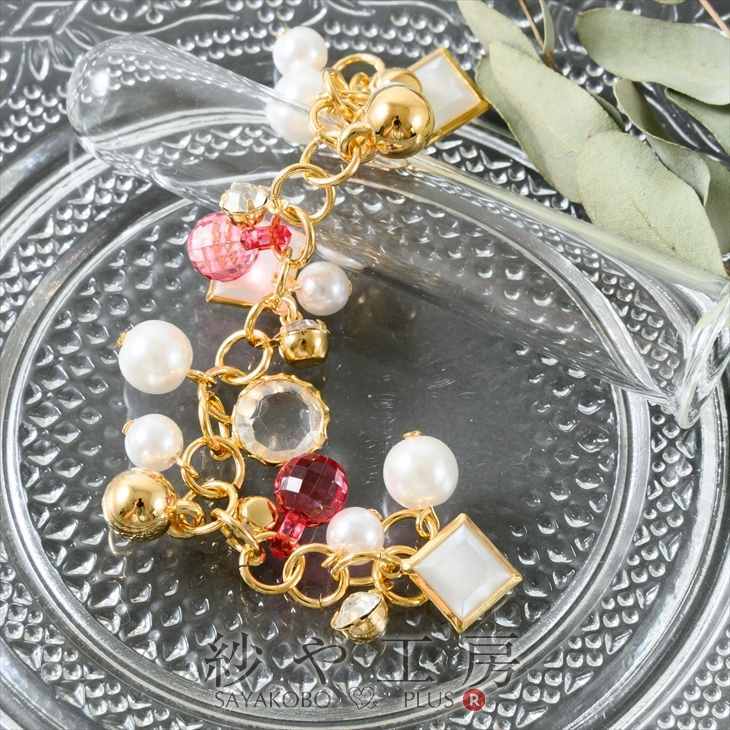 【サイズ】スクエアチャーム:一辺約9mm パール直径:約7mm、6mm ピンクボール直径:約7mm クリア円盤チャーム直径:10mm ストーンチャーム直径:約5mm メタルボール直径:約8mm
