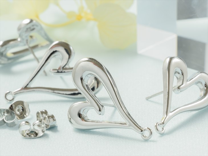 ピアスパーツ 316L ステンレス 変退色防止加工済 フレームハート アクセサリー パーツ シルバー 25mm 2ペア 4個 金属アレルギー対応 問屋
