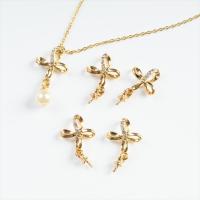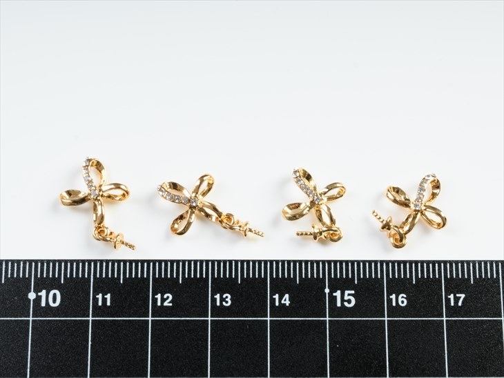 デザインヒートン ニッケルフリー 変退色防止 揺れる クロスリボン アクセサリー パーツ ゴールド 20mm 4個 金属アレルギー対応 問屋