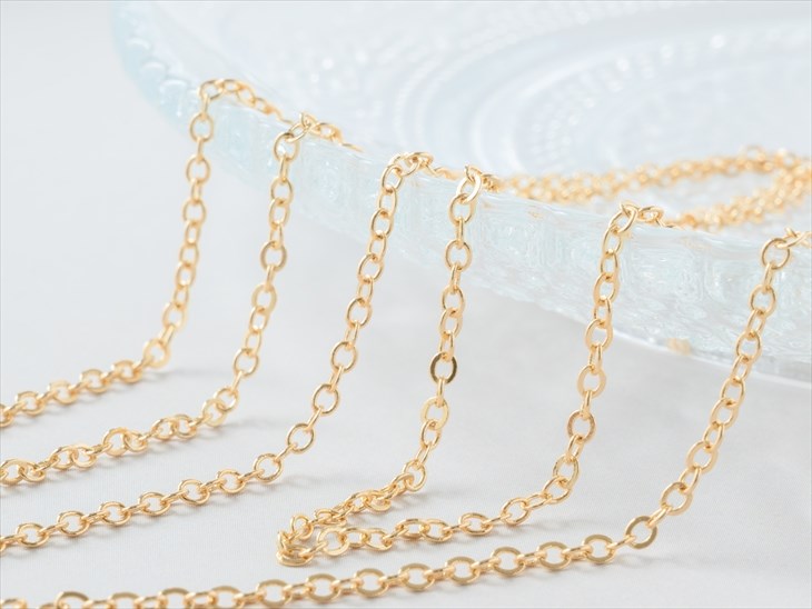 チェーン ニッケルフリー 変色防止加工済 あずきチェーン 真鍮 アクセサリー パーツ ゴールド 幅2mm 1m 金属アレルギー対応 問屋