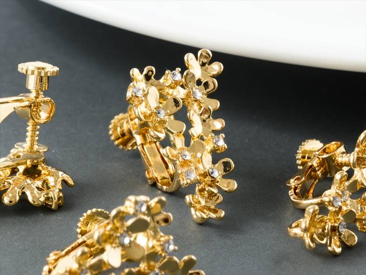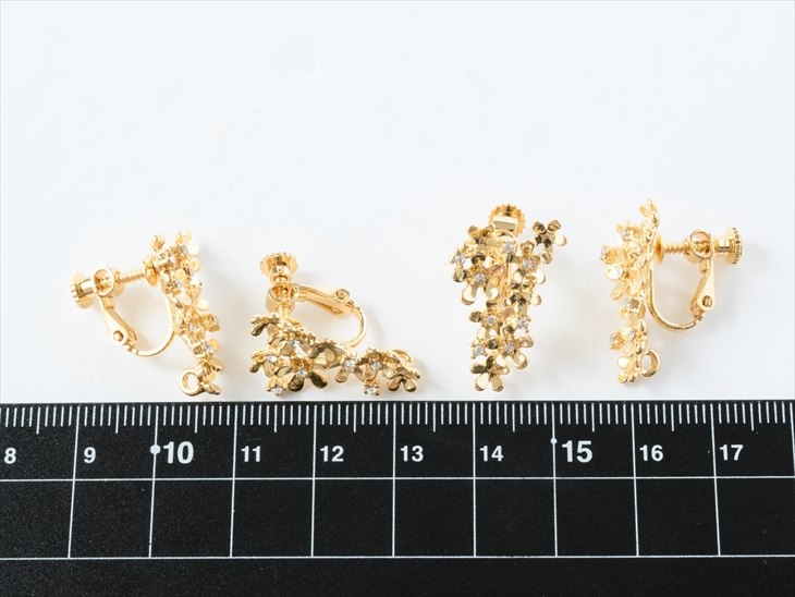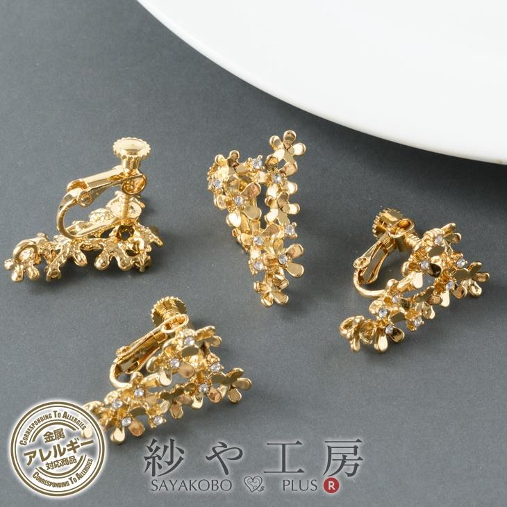 イヤリング パーツ ニッケルフリー 変色防止加工 ブーケ アクセサリーパーツ ゴールド 23mm 2ペア 4個 ストーン付 金属アレルギー対応 問屋