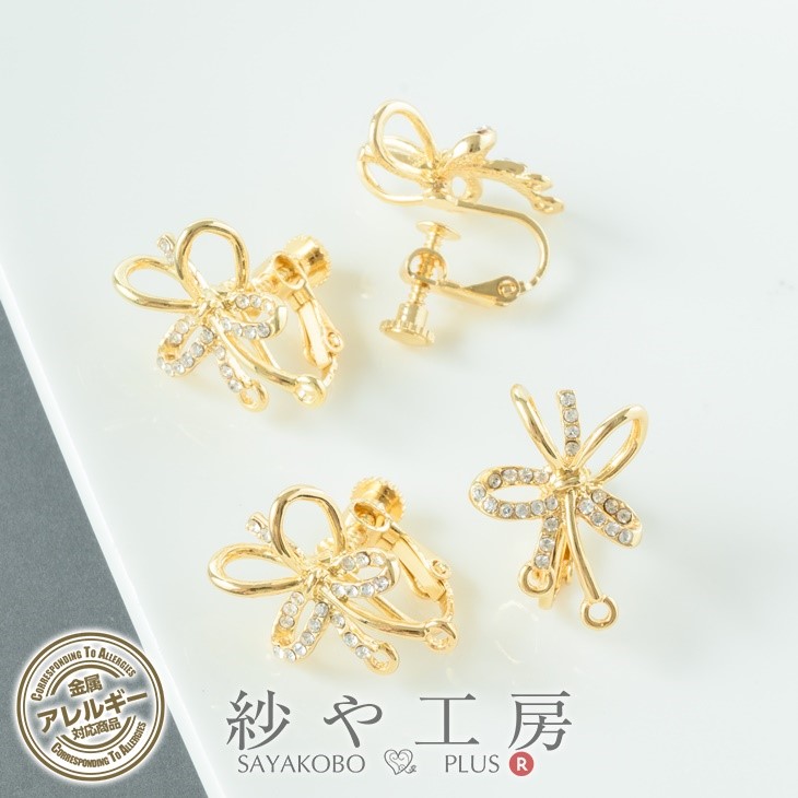 【関連キーワード】ゴールド 2ペア 4個 約2.2cm カン付 ストーン付 ハンドメイド 金 イヤリング 金属アレルギー対応 リボン ノンホールピアス アクセサリー資材 アクセサリーチャーム 金属 金具 素材 部品 材料 資材 アクセサリーパーツ パーツさや工房 手作り
