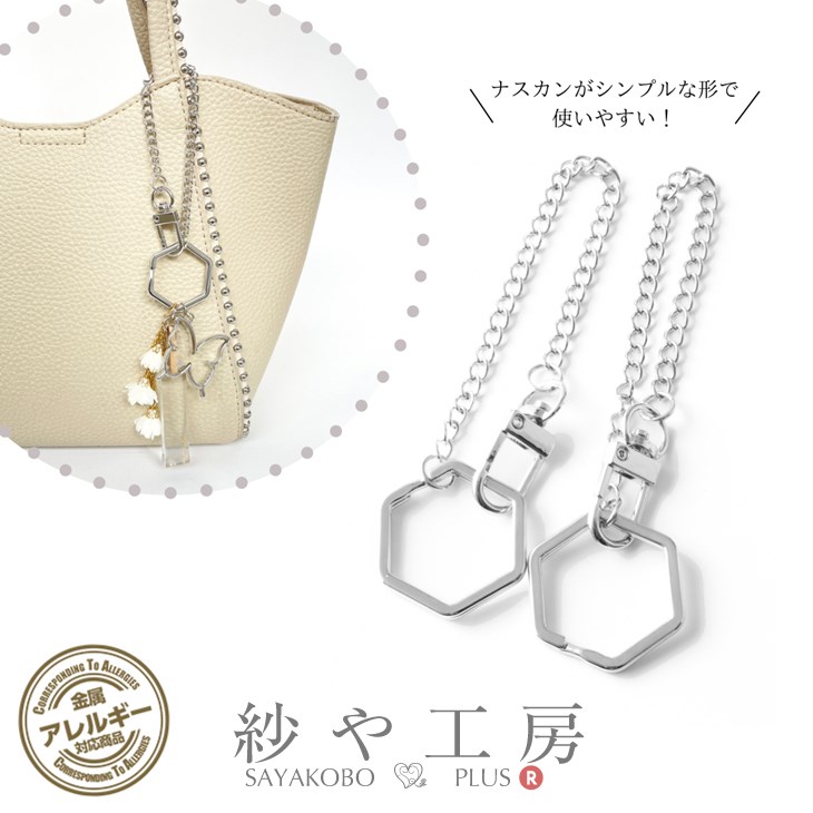 【関連キーワード】シルバー 2個 約21cm ヘキサゴン 変色防止加工済 ハンドメイド 六角形 キーホルダーパーツ キーホルダー金具 基礎金具 ニコイル バッグチャームチェーン アレルギー対応 アクセサリー資材 金属 金具 素材 部品 材料 資材 アクセサリーパーツ パーツさや工房 手作り