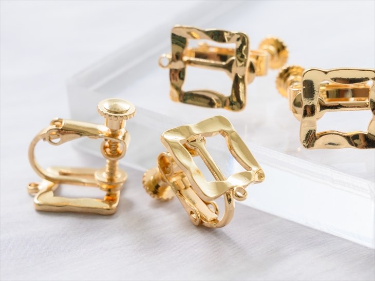 イヤリングパーツ ニッケルフリー 金属アレルギー対応 アクセサリーパーツ パーツ ゴールド 12.5mm 2ペア スクエア 変色防止加工済 問屋