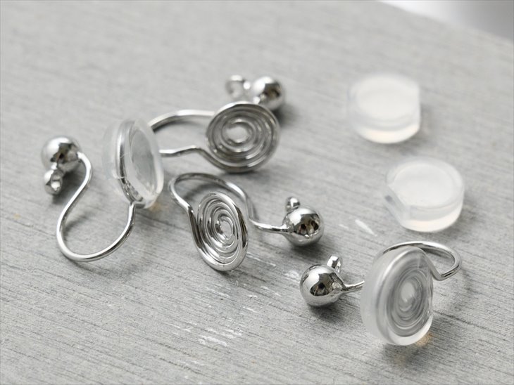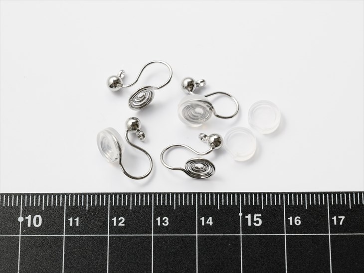 イヤリング クリップ 横 カン付 アクセサリー パーツ シルバー 14mm 10ペア シリコンカバー 玉4mm 問屋 ノンホールピアス アクセサリーパーツ