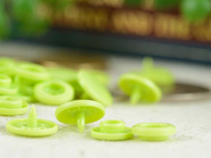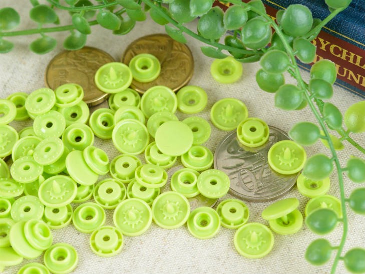 プラスチックスナップボタン(T-5) マットカラー 約30組(12mm フレッシュグリーン) ハンドプライヤー 手芸材料 ボタン