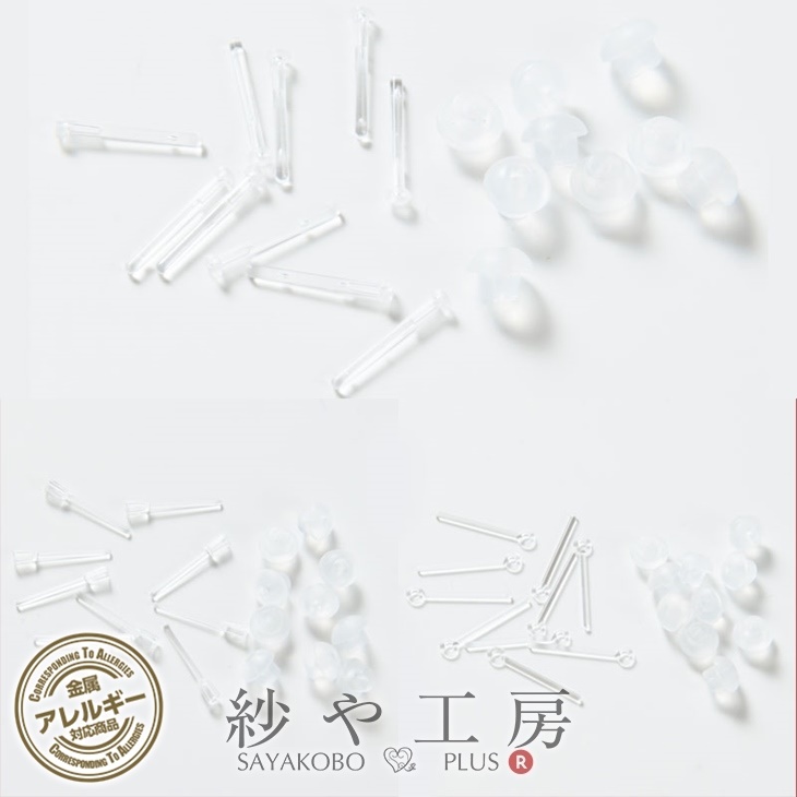 ピアスパーツ 樹脂 ポストピアス キャッチ付 【選べる3種】 クリア 5ペア 金属アレルギー対応 樹脂ピアス 樹脂製 アクセサリーパーツ