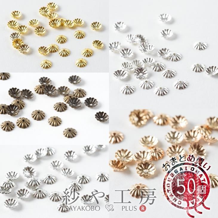 花座 座金 菊座 パーツ 菊型 【 選べる 5色 】 アクセサリー パーツ 6mm 50個 50ヶ 座金パーツ ビーズキャップ 花 花型 約0.6cm