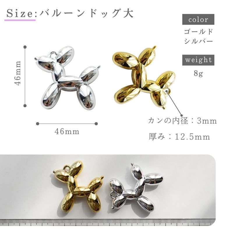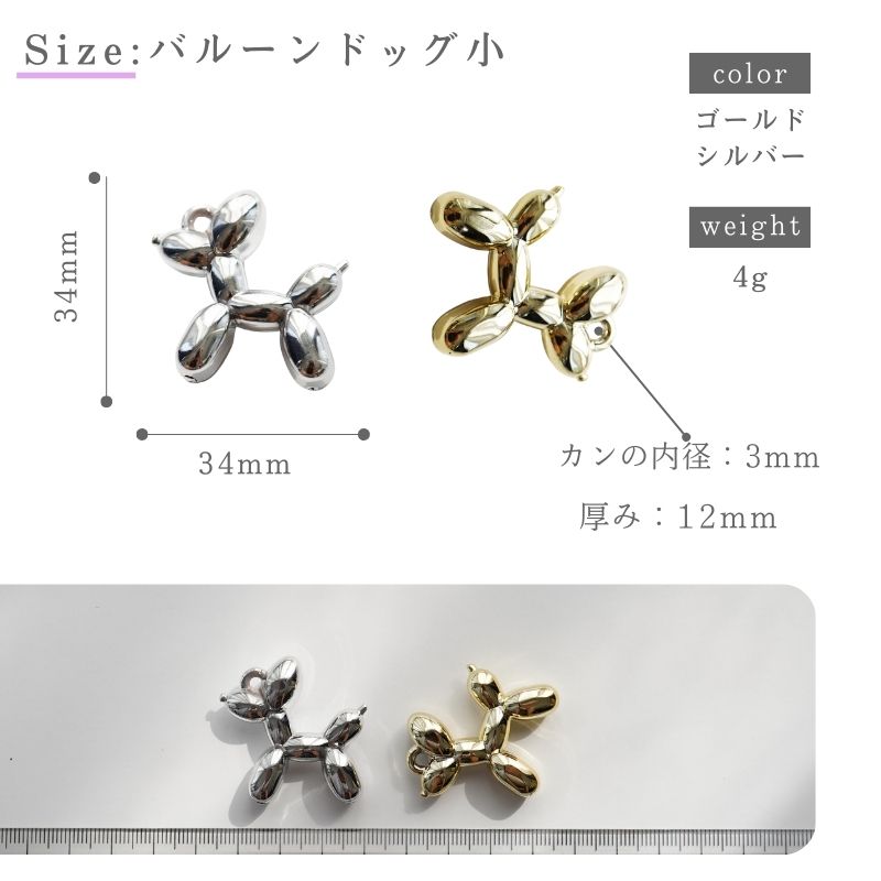 【サイズ】バルーンドッグ小:約34mm×34mm 厚み:約12mm カンの内径:約3mm