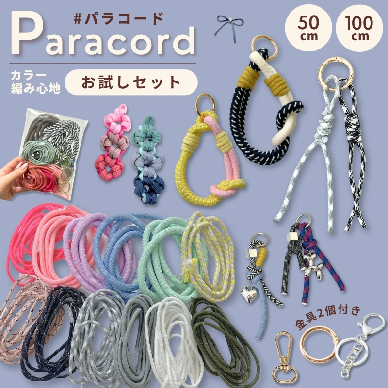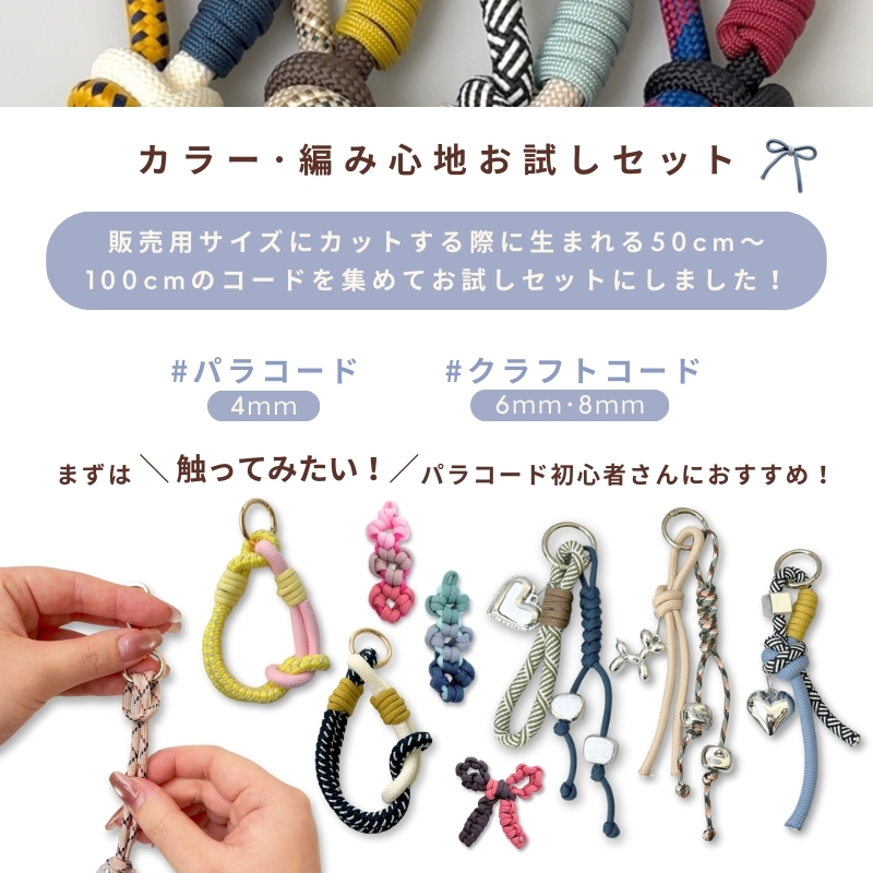 パラコード お試しセット【お1人様1点まで!】50cm 1m 太さ 4mm 6mm 8mm ハンドメイド用 紐 カラーコード スマホショルダー アクセサリー パーツ 柄 単色