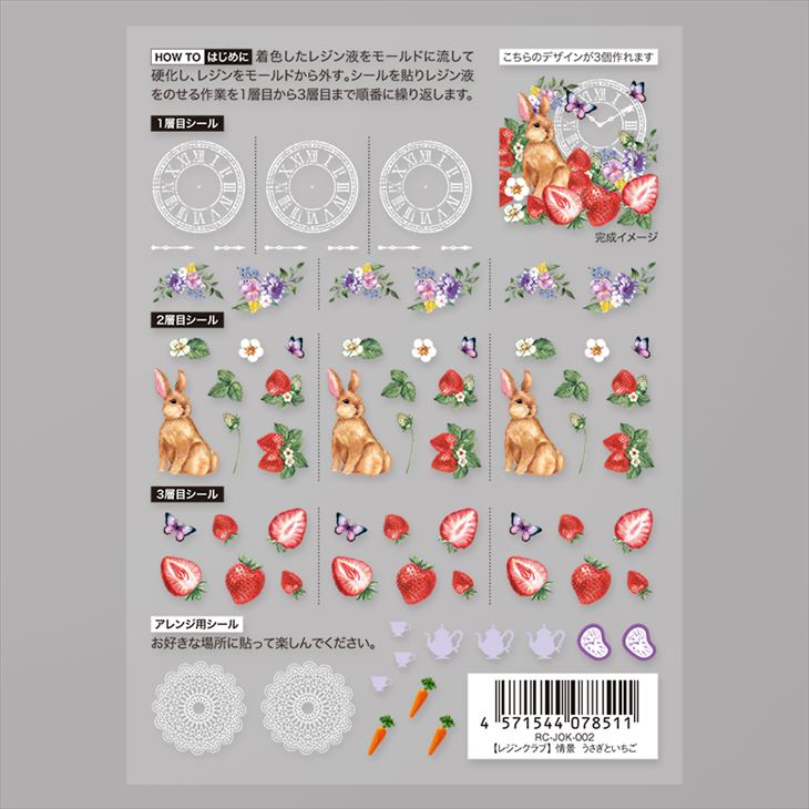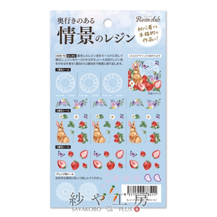 Resin club(レジンクラブ) 埋め込みレジンシール 情景のレジン うさぎといちご アクセサリー パーツ 88×150mm 1個 封入 レジン資材 問屋