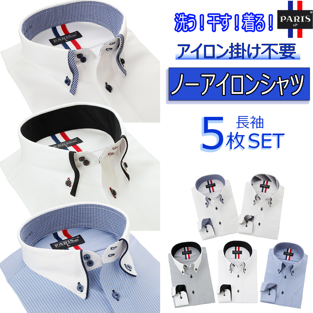 ワイシャツ ノーアイロン Yシャツ カッターシャツ ニット メンズ 長袖 5枚セット M L LL 3L 形態安定 白 青 ボタンダウン ドゥエボットーニ おしゃれ ブランド