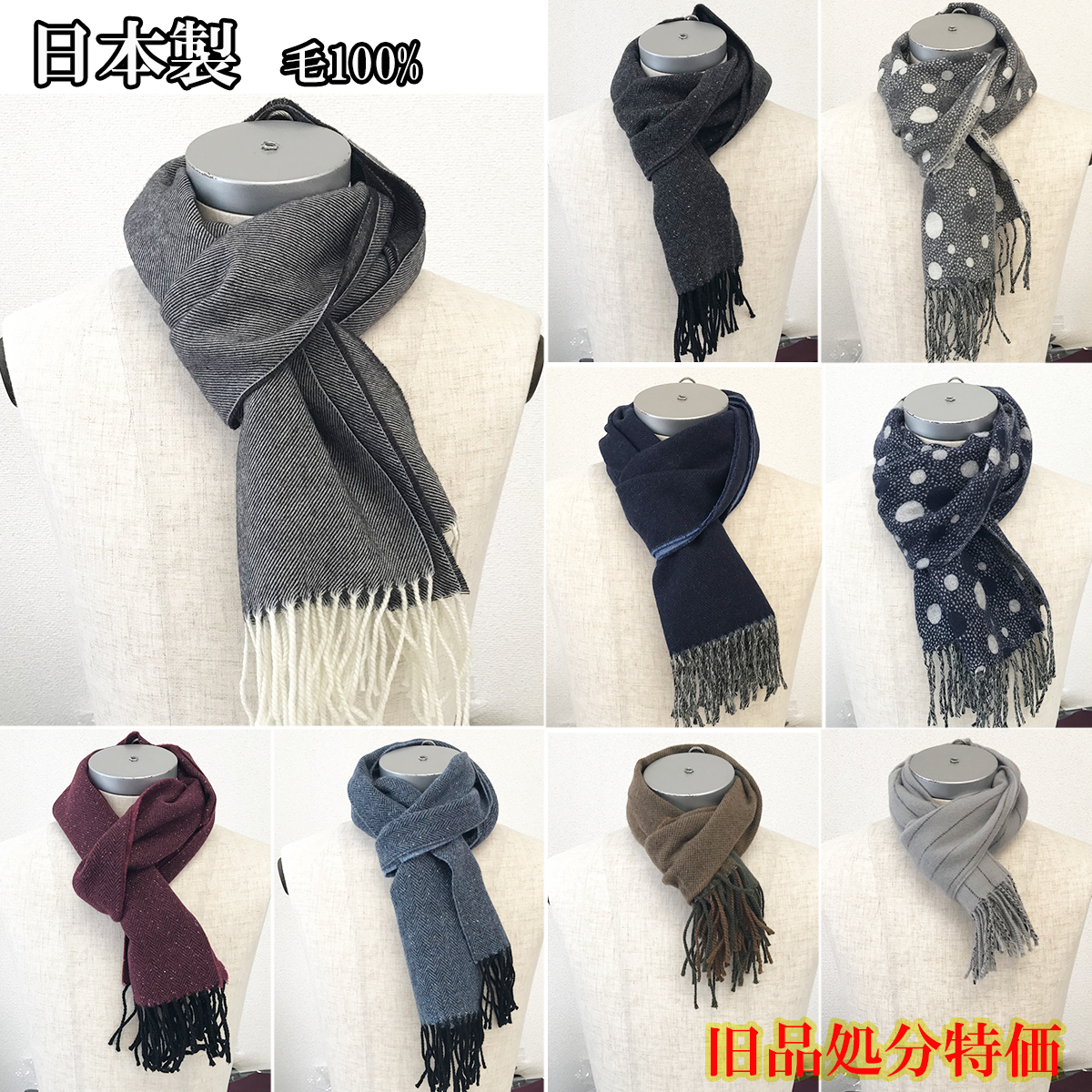 マフラー 日本製 ウール100% メンズ レディース 無地 ドット ビジネス カジュアル 冬 防寒 メール便送料無料