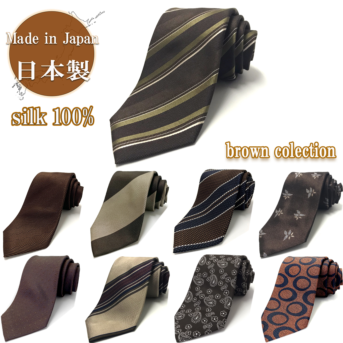 ネクタイ 日本製 シルク 100% 茶 ブラウン ストライプ チェック 小柄 無地 ペイズリー ビジネス 父の日 プレゼント おしゃれ メール便送料無料