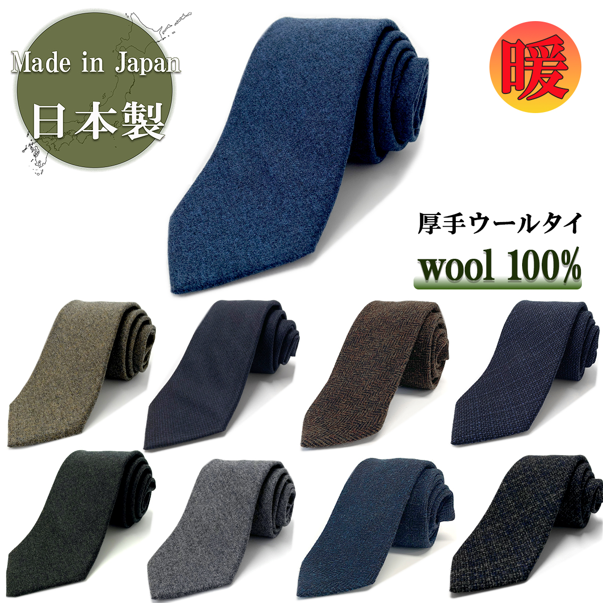 ネクタイ 日本製 ウール 100% 毛 無地 チェック ネイビー 紺 茶 ビジネス プレゼント 絹 おしゃれ あったか 秋 冬