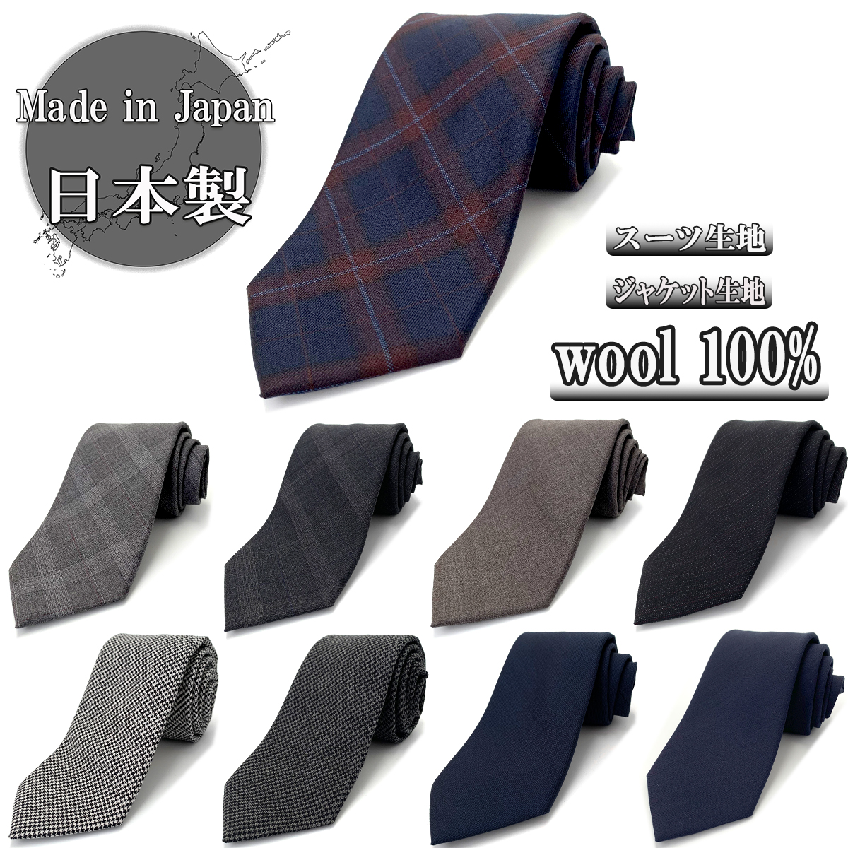 ネクタイ 日本製 ウール 100% 毛 無地 チェック ネイビー 紺 茶 ビジネス プレゼント 絹 おしゃれ あったか 秋 冬