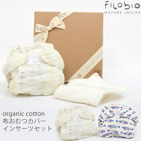 イタリアのベビー・子供服のブランドFilobioのオーガニックコットン ポケット式布おむつ(インサーツ1枚付き)です。 おむつカバー&インサーツ(吸収パッド)が入ったギフトセットです。 カバーは柔らかなオーガニックコットン生地の間に防水布が挟んであります。 赤ちゃんの肌に触れる部分はコットン素材です。 また、サイドギャザーがしっかりと立体的になっているので横漏れ防止に役立ちます。 ウエストはマジックテープになっているので体型や成長に応じて調整可能。 インサーツは厚手パイルを重ねた3重構造で、裏面は通気性の良いさらりとしたポリエステル素材です。 インサーツがズレないように挟み込むポケットがあり、あらかじめインサーツを装着したもの準備しておけば、おむつ替えもカンタンにできて便利です。 もちろんお手持ちのおむつを合わせてもお使いいただけます。 リボン付きギフトBOX入りなので、ご出産祝いの贈り物にもお勧め♪ ご使用前に1-2回予洗いをして頂くことで吸収力がアップします。 漂白剤、柔軟剤のご使用は避けてください。