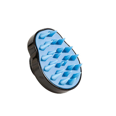 シリコン 剣山 頭皮 マッサージ ブラシ <タイプC ひょうたん ブラック-ブルー> 持ち柄付き クッション シャンプーブラシ コーム 【定形外郵便のみ送料無料】