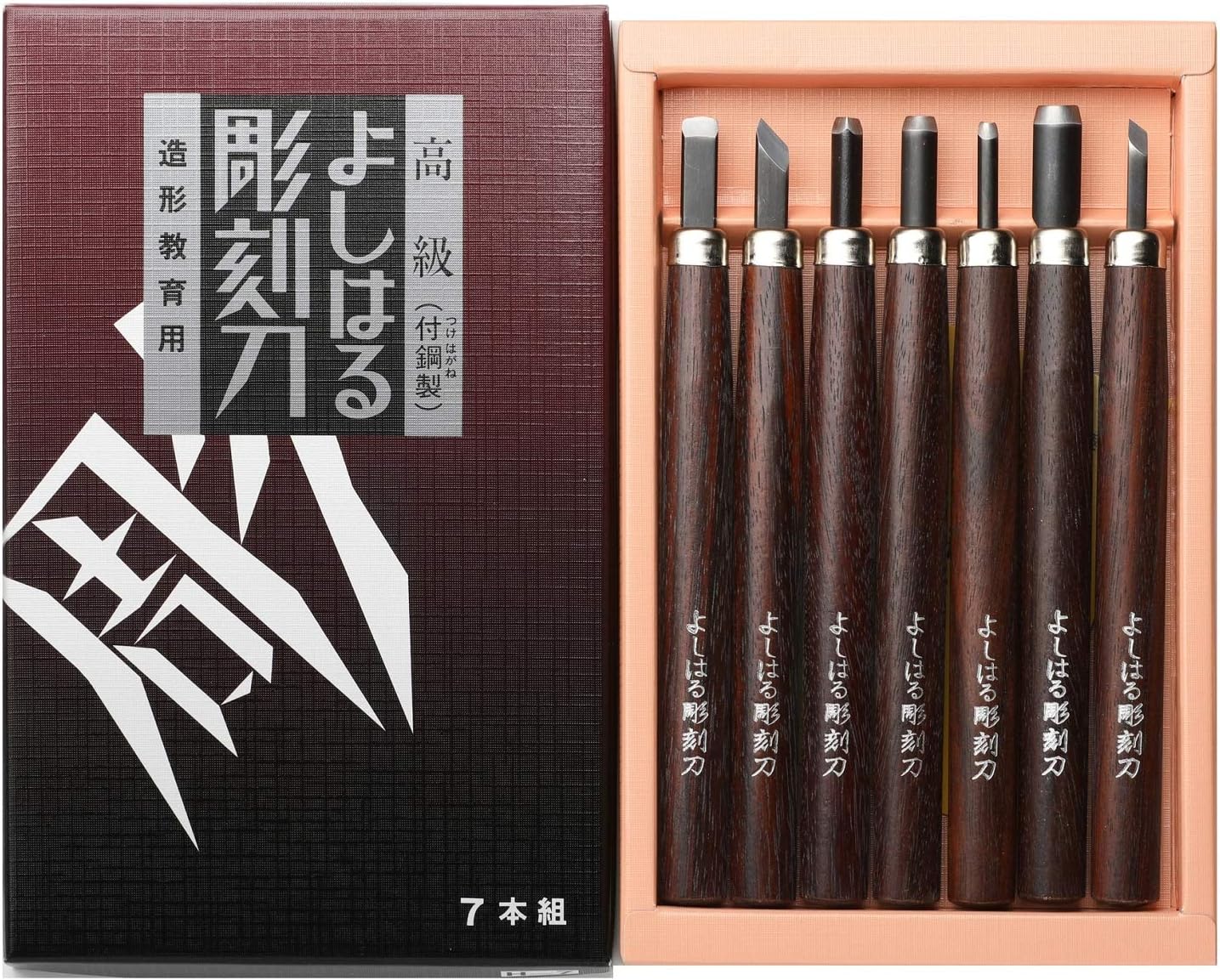 義春刃物 高級 付鋼製 よしはる彫刻刀 紙箱入 7本組 H-7