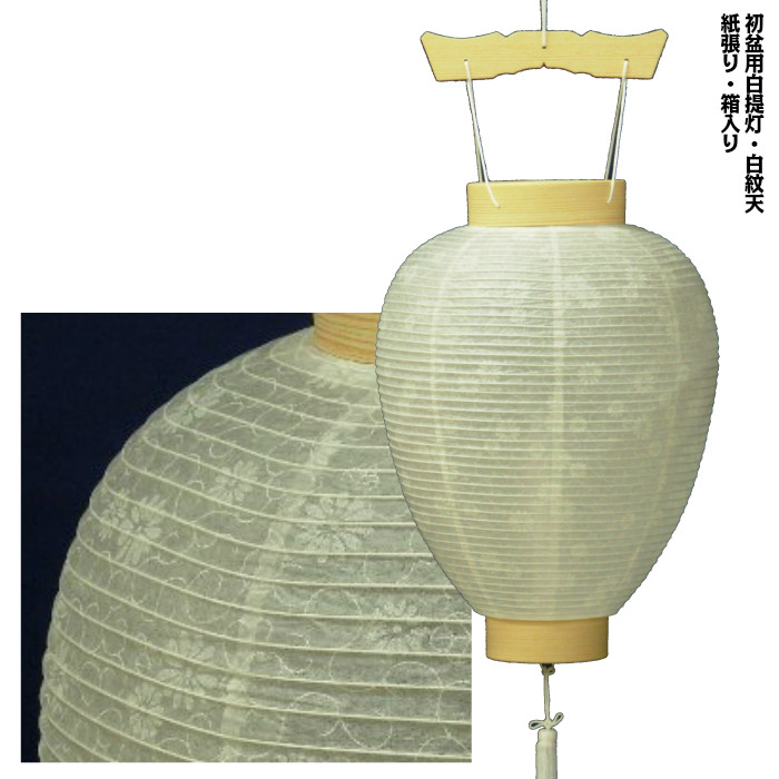 初盆用白提灯 中尺柾白紋天 LEDローソク灯付き 40cm 1個