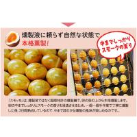半熟にゆでて塩味をつけ、桜のチップとさくらんぼのチップで本格くん製しました。