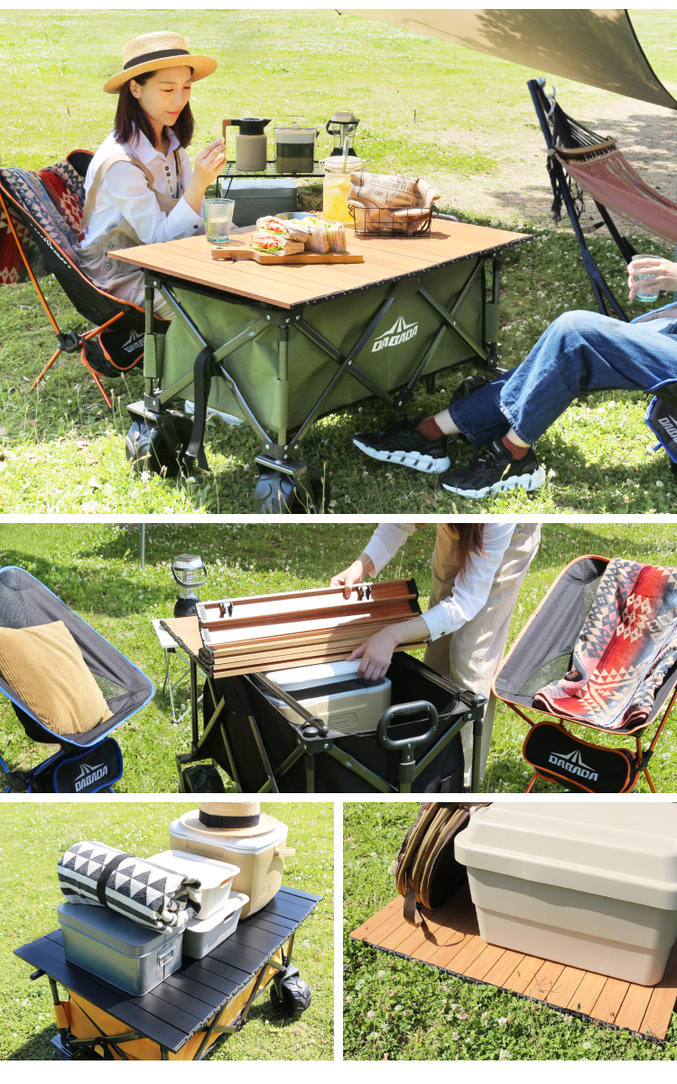 荷物を運ぶだけのアウトドアワゴンをテーブルに変身させて、使わないときも有効活用!