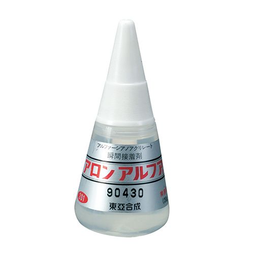 瞬間接着剤です。接着物の表面についている微量の水分で急速に固化し、各種の接着物を秒速で接着します。用途に合わせて色々な種類が用意されているほか、木工用、ジェルタイプもあります。