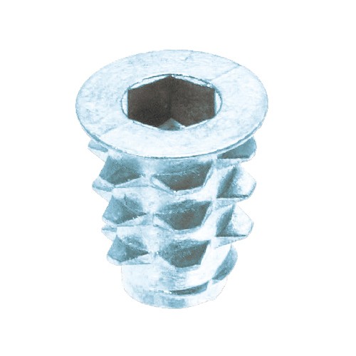 特徴:外周はテーパねじになっており挿入抵抗が少なく、割れを防いで無理なく真直ぐにねじ込めます。独立したねじ山と切欠き溝が木部に食込むので、戻りやゆるみの心配は不要です。ツバが平座金の機能を備え、軟材の場合や部材をはさんで締付ける場合に適しています。材質は亜鉛合金ダイカストで三価クロメートめっきがしてあります。木工用埋込みナットです。締結する相手材料、部材の強度が低く、木ねじでは十分な締付け強度が得られない場合に使用します。■少量パックに入ったねじや釘を、指定のパック単位で。数量は総数で確認ください。