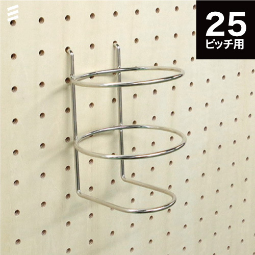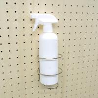 有孔ボードに除菌アルコールボトルや消毒液のボトルを設置可能。室内、店舗内の感染対策に使用できるホルダーです。調味料や水筒、ペットボトルなど筒状のものを置いておくこともできるので有孔ボード活用の幅が広がります。