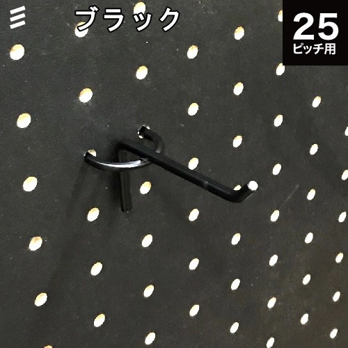 有孔ボード バーフック 黒 ブラック 70、ピッチ25 (1個) 八幡ねじ YAHATA