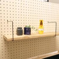 おしゃれなインテリアとしてだけでなく、ガレージ、キッチン・棚の取付など収納、吸音壁等の用途に使われています。