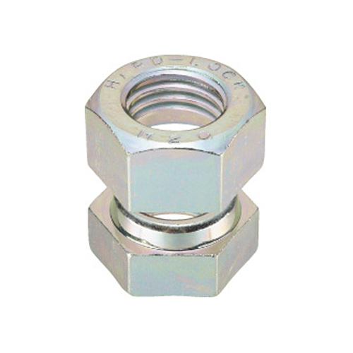 雄・雌2つのナットで構成され、雄ナットを締付ナットとして、雌ナットをロックナットとして使用します。雄ナット凸部が偏芯していて、締付けるとクサビ効果が発生します。着脱を繰り返しても、ゆるみ止め機能を維持します。環境に配慮した3価クロメートメッキ処理品です。