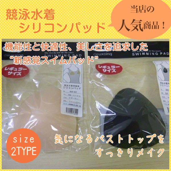 当店人気の『シリコンパッド』は競泳水着専用に開発された極薄シリコンで成形されており、粘着タイプで着用時には滑らかでキレイなバストラインが出来ます。