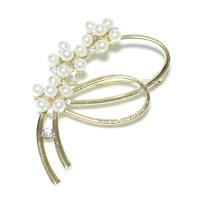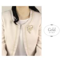 【ゆうパケット送料無料】ブローチ/エレガント 2連曲線ライン 花パール 大きめ br75☆ゴールド/シルバー フォーマル 結婚式 卒業式 入学式