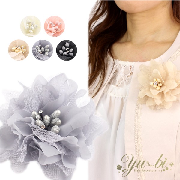 【定形外郵便OK】コサージュ/ラインストーン♪ラメ レースコサージュ ヘアクリップ c70☆白/ピンク/ベージュ/グレー/黒 卒業式 入学式