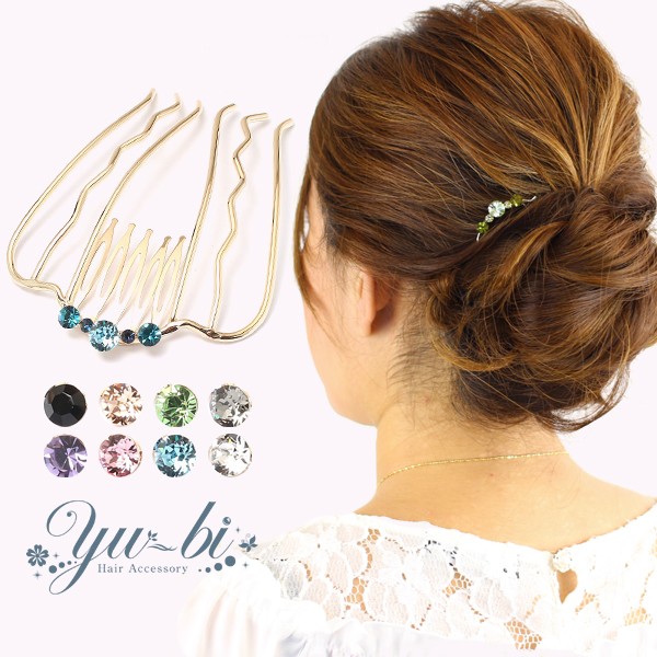 【ゆうパケット送料無料】特許取得!ヘアコーム/モアコームボーテ シンプル ラインストーン 夜会巻き mcbe47 黒/茶色/緑/紫/ピンク/水色/クリア
