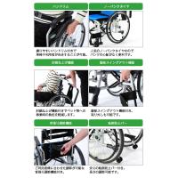 | 機能 | 速度調整用ブレーキ/転倒防止バー/組立不要(※脚部取り付け必要) 駐車用ブレーキ/ワンタッチ背折れ/クランク型アームレスト スイング式フットサポート/フットサポート長さ調整/跳ね上げ式アームレスト 背面ポケット/レッグレスト/波型ハンドリム 安全ベルト/サイドガード/背張り調整機能 |