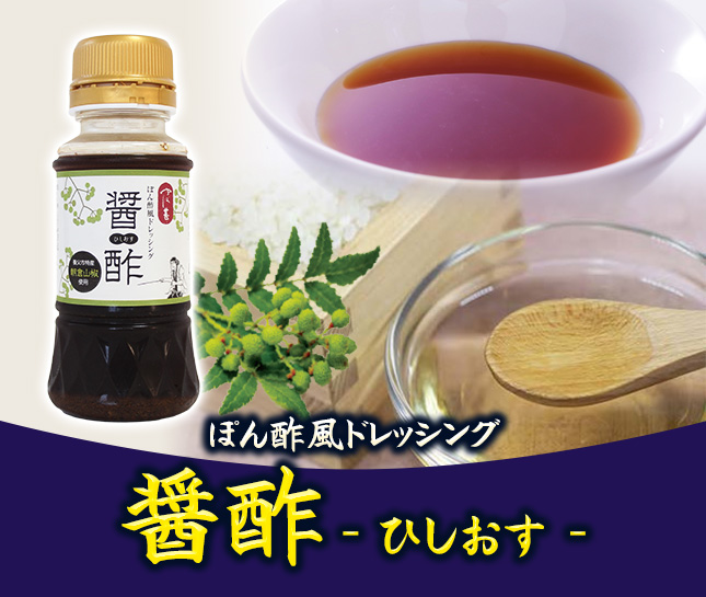 醤酢(ひしおす)とは、本醸造醤油にまろやかな醸造酢+だしをブレンドし、 魔法のスパイス(朝倉山椒)を加えたものです。