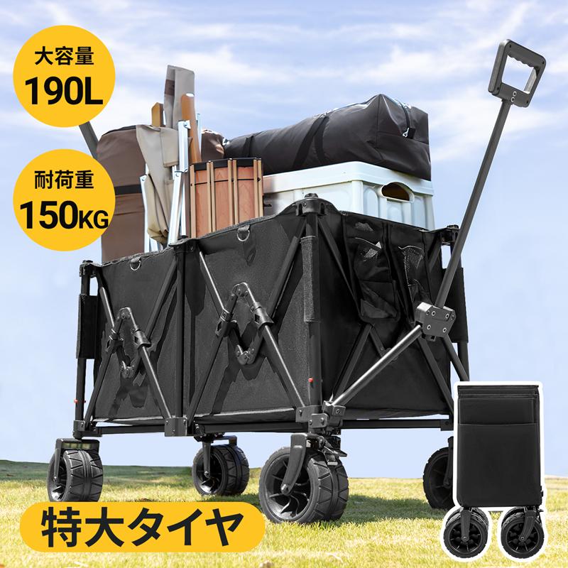 キャリーワゴン アウトドアワゴン 折りたたみ タンクタイヤ 190L 大容量 4輪 マルチキャリー 子供乗せ 折り畳み 自立収納 キャリーカート キャンプカート