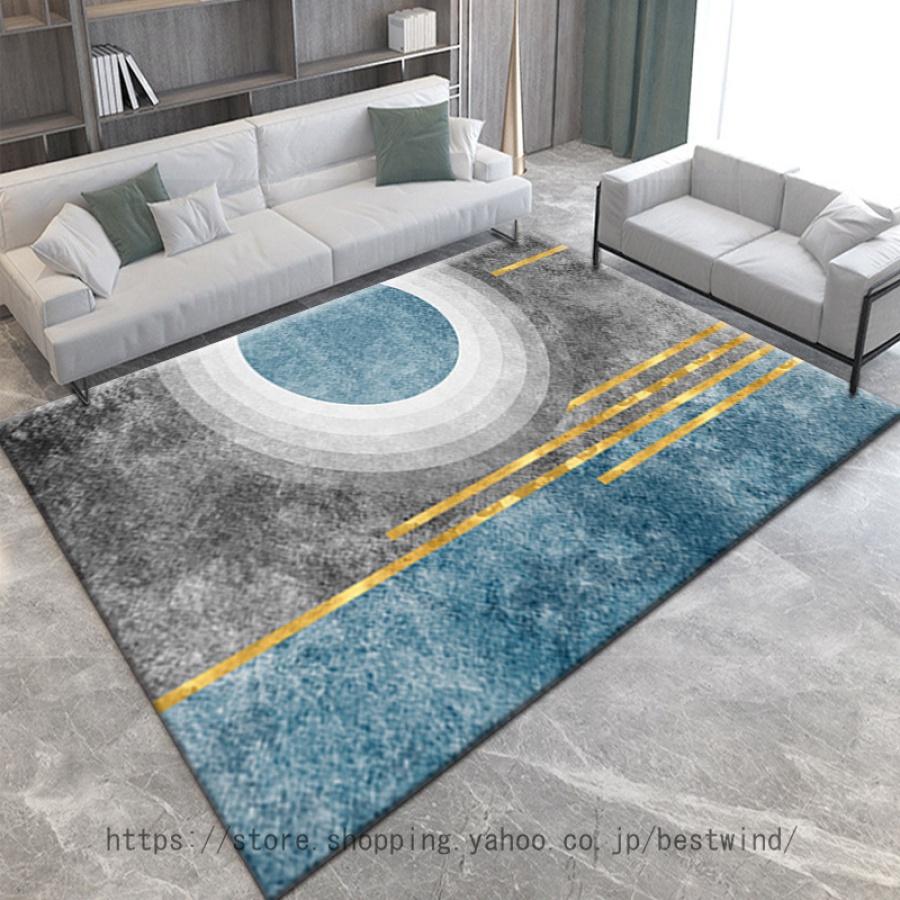 ラグ カーペット ラグマット 洗える 抗菌 防臭 防ダニ 青い 黄色 ブラック ネイビー 幾何柄の柔らかいポリエステルラグ 一人暮らし モダン