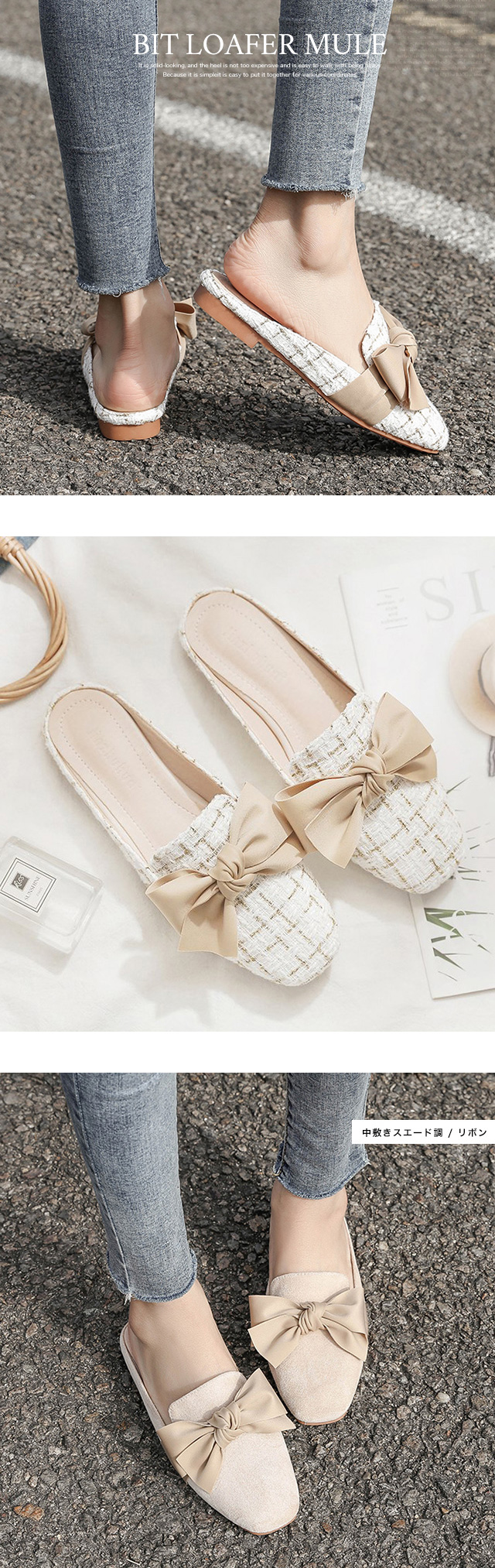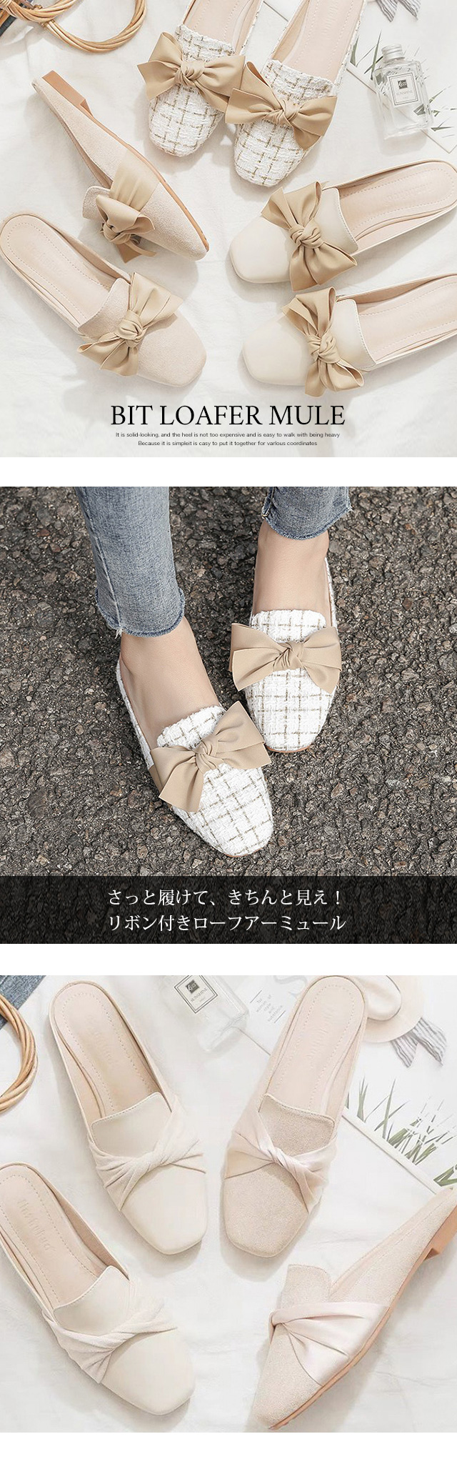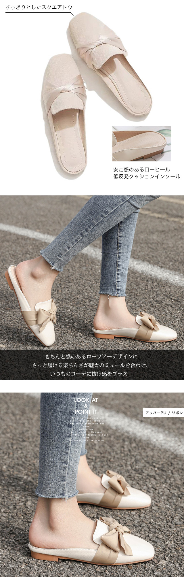 ミュール ローヒール 歩きやすい ローファー ミュール 2センチヒール ぺたんこ レディース スクエアトゥ 22.5 24.5 フラット 履きやすい