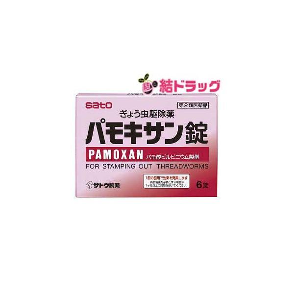 【第2類医薬品】パモキサン錠 6錠【佐藤製薬】 k04 |商品区分:医薬品【パモキサン錠の商品詳細】<br>●1回の服用で効果を発揮し、すぐれた駆虫作用を示します。【用法・用量】<br>大人(15才以上)1回5錠、11〜14才1回3錠、8〜10才1回2錠、5〜7才1回1錠、いずれも1日1回服用します。なお、2回以上続けて服用しないでください。【働き】<br> 腸管からはほとんど吸収されず、ぎょう虫に直接作用して、駆除します。【有効成分】<br>モ酸ピルビニウム…376.25mg<br>(ピルビニウム塩基として250mg)<br>添加物:CMC-Ca、トウモロコシデンプン、ステアリン酸ポリオキシル、ステアリン酸Mg、ヒドロキシプロピルメチルセルロース、マクロゴール、酸化チタン、赤色102号、黄色5号を含有します。【使用上の注意】<br>■してはいけないこと<br>(守らない …続きは商品説明にて