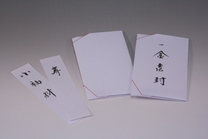 ご連絡がない場合、中包みは「金壱封」と「無地」、札紙は「寿」「小袖料」「御帯料」「無地」をお入れしておきます。
